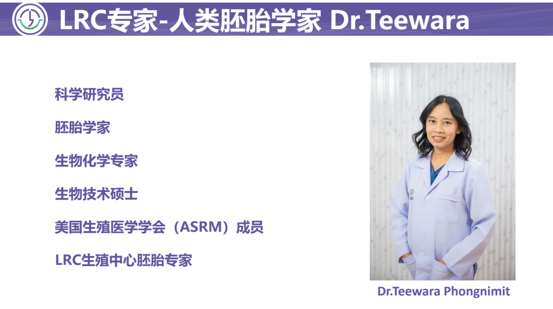 1997年,LRC生殖中心由泰国卫生部外事局局长、泰国皇室蒙拉查翁·沃拉芭帕·扎伽潘亲王殿下主持创建。由泰国资深专家组成,汇聚了泰国囊胚之父(Sawat)、 辅助生殖教授(Chatchai )、顶尖医学博士(Nikorn)、人类胚胎学家(Teewara)等生殖领域资深专家。20余年来,LRC生殖中心诊治超过2万名患者。至今2100对IVF周期,囊胚养成功率87.2%,移植成功率79.2%。